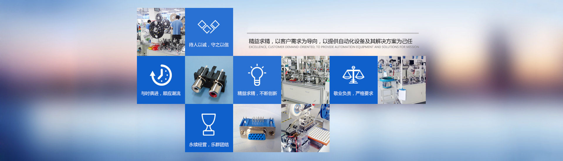 自2008年成立以來,致力于解決并實現效率高、品質高、低成本、全自動化生產作業。CCD視覺檢測系統,CCD視覺定 位系統以及機器視覺檢測設備,電子連接器組裝設備的開發和推廣。公司以“敢于創新,服務客戶,合作共盈”為宗旨,多 年來為泰科、SMK、Molex、ACON、康聯精密,太康精密,金工精密,立信傑精密等企業提供...